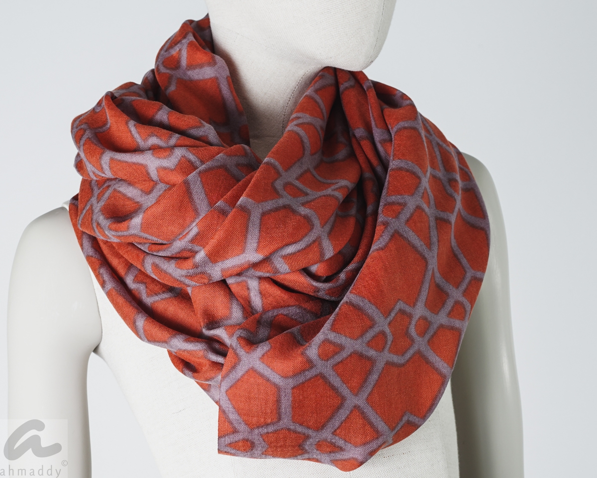 AHMADDY Wolle Seide Schal Blutorange lila violett