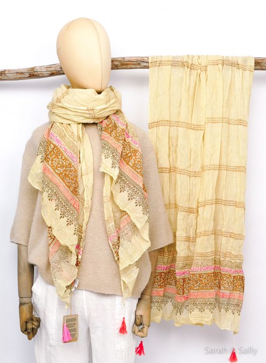 Sarah & Sally Baumwollschal Neon auf hellgelb