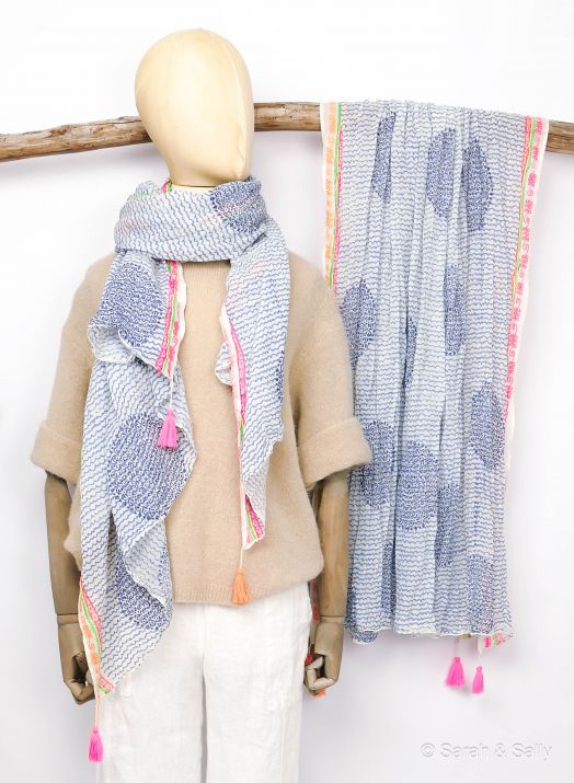 Sarah & Sally Baumwollschal Mandala blau